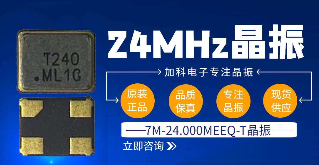 为保证工业触摸屏主控MCU实现高稳定性工作,需要一颗外置的24MHz高精度无源贴片进口晶振,此24MHz晶振选型因素参考如下:1,额定频点24MHz晶振2,高精度,常温25℃条件下精度±10ppm,3,小尺寸封装,针对如上设计需求,加科电子推荐选择TXC晶振(台湾晶技TXC)7M系列无源晶振7M-24.000MEEQ-T,采用3225贴片晶振封装,额定频率24MHz,此款TXC晶振负载电容10pF,常温25℃条件下精度±10ppm,全温-20℃~75℃条件下精度±10ppm。