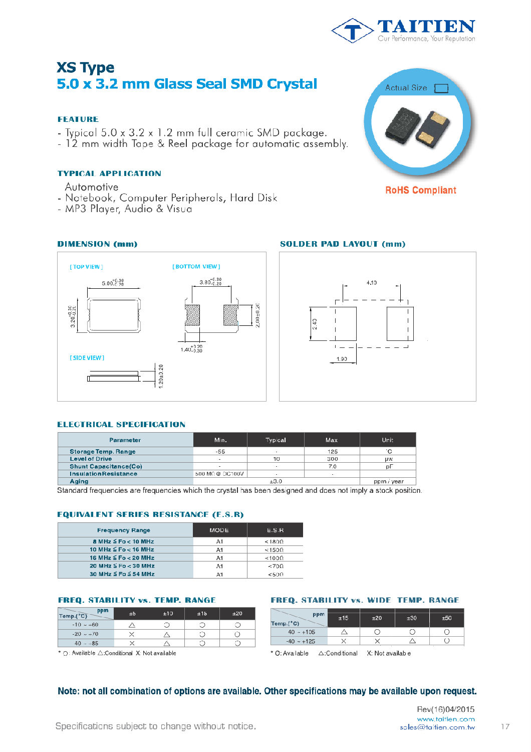 24MHz无源晶振 5032封装 XSHEELNANF-24MHZ 20PF 30PPM 泰艺晶振