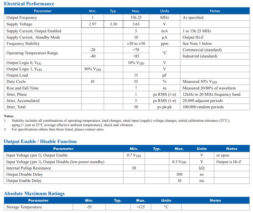 | 料号 | 供应商 | 频率 | 电压 | 精度 | 工作温度 |