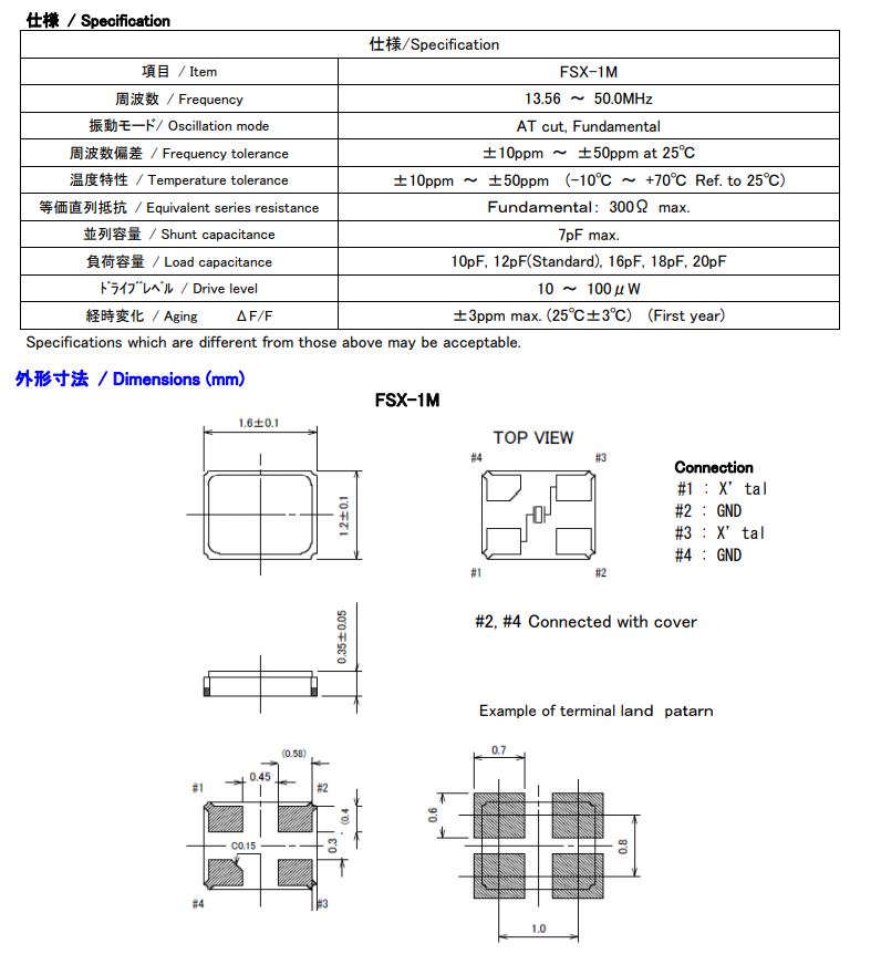 特征: 可实现高密度安装,非常适用于移动通信到计算机,多媒体关系的广泛用途。 应用:通信设备,手机,GSM,PHS,PCS,DECT,TETRA,GPS,PCMCIA卡/PCMIA. 超小型1.6×1.2×0.35mm贴片缝焊封装 无引线型可回流焊,无铅RoHS指令对应品/Pb free,RoH