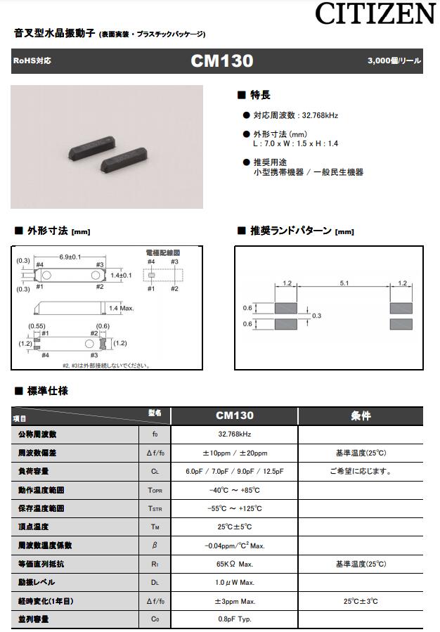 | CM13032768EZFT | 32.768KHz | 40°C+85°C | 12.5PF | ±10PPM |