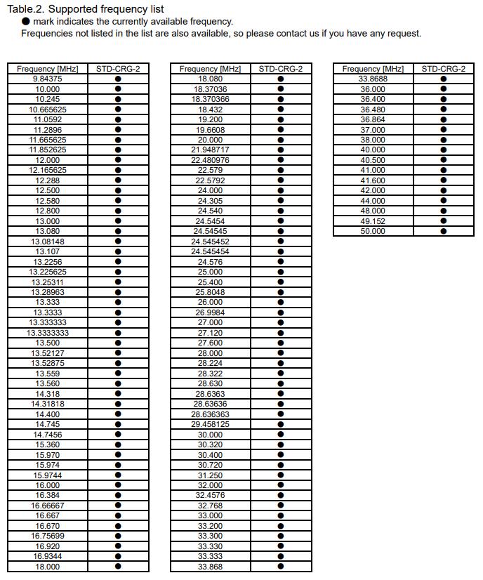| 型号 | 频率 | 负载电容 | 精度 | 工作温度 |